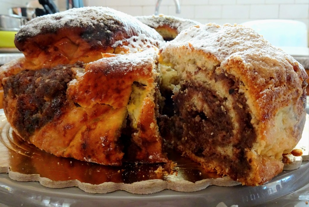 Oggi voglio raccontarvi una storia. Una storia che parla di tradizioni antiche e in particolare di buon cibo: la gubana. È un dolce la cui origine è delle Valli del Natisone (Udine), una zona bellissima situata a nord est di Cividale. Dolci colline, fiumi e torrenti da cui sgorgano acque limpide e fresche e piccoli paesi incastonati qua e là, come grandi occhi verdi che guardano intorno. Valli popolate da persone semplici, solidali, che abbracciano le proprie radici e le proprie tradizioni e le portano avanti per generazioni con l`orgoglio e la dignità della gente di montagna. Ed è qui che questo fantastico dolce trae le sue origini. Un impasto morbido fatto con farine bianche e di manitoba, uova fresche, lievito di birra, grappa, zucchero, burro e che mani sapienti lavorano con abilità attendendo con pazienza le quattro lievitazioni che devono avvenire affinché quel panetto lavorato possa sprigionare tutto il suo profumo e la sua bontà. E poi parliamo del ripieno. Un ricco mix di noci, mandorle, amaretti, pinoli, cacao, cannella , zucchero, grappa rum.. La pasta viene stesa con il mattarello dandole una forma circolare e sottile. Poi la si cosparge col ripieno e le si da’ la classica forma a chiocciola. Una pennellata di tuorlo d’uovo sulla superficie e poi una bella cucchiaiata di zucchero. Infine un`ora di forno ed il capolavoro è pronto… Assaggiare per credere.. In ogni fetta di gubana possiamo gustare un sapore unico, genuino, vero, ricco ma semplice al contempo. Una storia di profumi e di sapori che ci riporta al tempo passato, quando le donne si prodigavano, con il poco che avevano, a preparare cibi buoni con le loro mani da piccole e vere artiste.