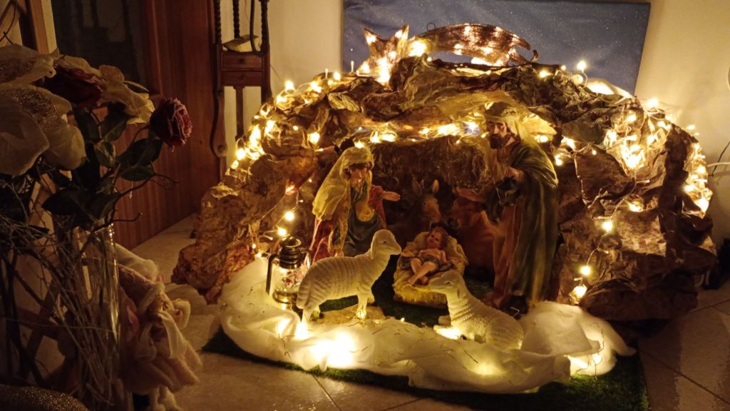 Buongiorno amici cari, oggi condivido con voi la foto del mio presepe. La grotta è interamente costruita con rete e carta roccia. Le statue, di dimensioni ragguardevoli, circa 40 centimetri, sono artigianali e sono un caro ricordo di mio papà che me le ha regalate qualche anno fa. A quell’epoca mi chiese cosa volessi come regalo di Natale. In effetti a me non serviva niente, tutti noi abbiamo troppo, veramente non volevo caricarmi ulteriormente di superfluo, ma volevo qualcosa che mi ricordasse il suo amore per sempre. E quindi, cosa chiedergli di meglio che delle belle statue per il mio presepe? Rappresentano l’amore, la famiglia, la generosità di San Giuseppe che per seguire la volontà del Signore si fece padre adottivo di Gesù e lo accolse a piene mani nella sua vita insieme a Maria, la madre naturale e mamma di tutti noi. Sono stata e sono molto felice di aver ricevuto quel regalo dal mio papà. E anche adesso che lui purtroppo non c’è più, ogni volta che con mio marito allestisco il Presepe sento che mio papà è lì con noi, insieme alla mamma, con I suoi occhi dolci, con il suo amore, a scaldarmi il cuore e a parlarmi di famiglia e di quel bene grande che ci siamo voluti e che ci vogliamo sempre , perché l’amore vince, vince anche dopo la morte. E anche se con tanta nostalgia nel cuore, qualche lacrima e sofferenza, vado avanti e allestisco ogni anno il Presepe e l’albero insieme a mio marito in nome di quell’amore forte ed inesauribile che ci lega e che ci legherà per sempre e per tutte le cose belle che fortunatamente ancora ho in questa vita, tra le quali, le più belle, l’amore di mio marito 💖 e quello del mio cane 🐕. Un abbraccio e buona giornata a tutti 💞