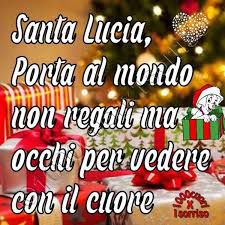 Buongiorno amici cari, oggi festeggiamo Santa Lucia, la protettrice della vista. Il suo nome deriva dal latino “lux”, che significa Luce. Lucia nacque a Siracusa da una famiglia benestante, sembra tra gli anni 280 e 290 d.C. Rimase orfana di suo padre quando ancora era molto giovane e visse accanto alla madre, gravemente ammalata. Durante un pellegrinaggio ebbe una visione in cui una Santa le promise la guarigione della mamma. La guarigione avvenne e Lucia, in seguito a questo fatto, decise di consacrarsi a Dio e abbraccio’i voti. Distribui’ tutti i suoi beni ai poveri, e da qui inizio ‘la tradizione che la vuole portatrice dei regali ai bimbi . Promessa sposa ad un uomo ricco, ma pagano, rifiutò il matrimonio e venne denunciata da quest’ultimo al Prefetto di Siracusa.. Subì un processo nel quale si rifiutò di rinunciare alla sua fede. Per questo fu vittima di tentativi di martirio e di perpetrate torture, ma ne uscì ogni volta illesa. I suoi persecutori, a questo punto, decisero di ucciderla e la decapitaron il 13 dicembre, quando aveva soltanto 21 anni. Buona giornata a tutti 💕🌹🙏