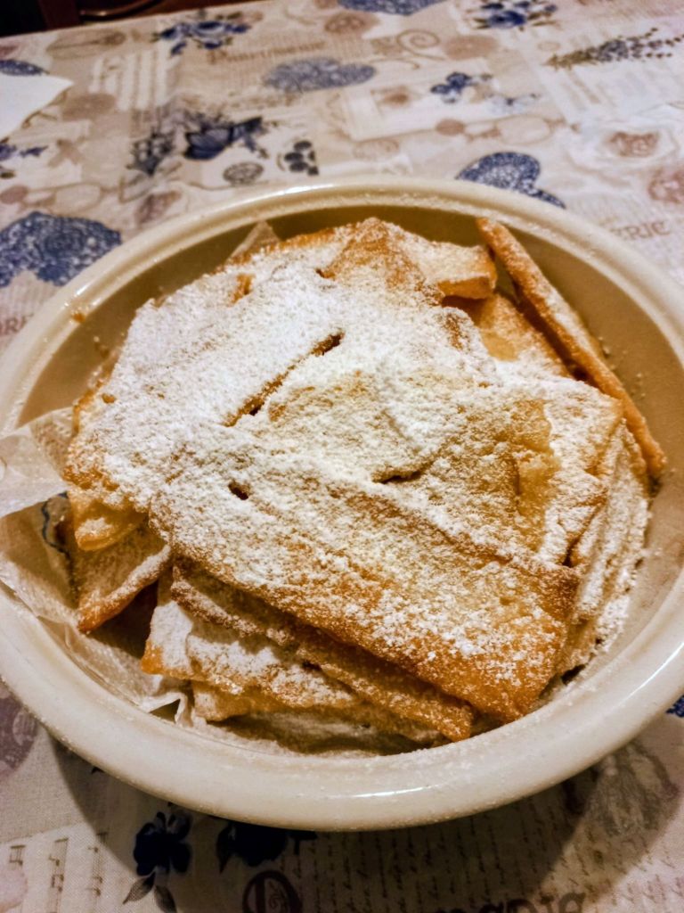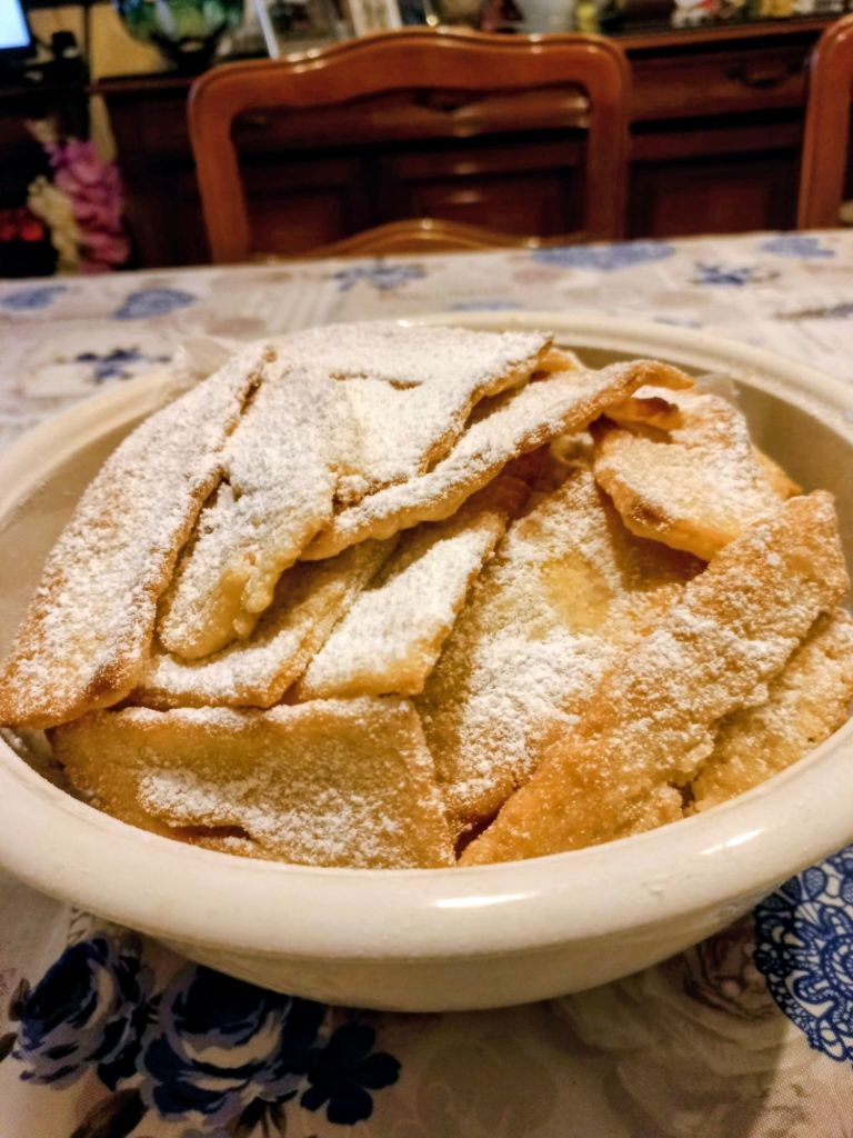 Buona serata amici cari. Ebbene sì, ho rifatto i crostoli. Alla fine chiamateli come volete, chiacchiere, crostoli, o frappe.. Credo che la ricetta sia unica, poi ognuno ci aggiunge questo o quell’ ingrediente per dare alle proprie preparazioni quel pizzico di personalità e di unicità. Una fragranza di vaniglia di sprigiona da questi dolci, dal sapore semplice, eppure sempre in grado di soddisfare le nostre papille gustative. In famiglia o, perché no, anche in qualche allegra serata tra amici. Credo che un buon cibo, dolce o salato che sia, è sempre un ottimo pretesto per condividere il piacere di mangiare bene con le persone a cui vogliamo bene. Vi abbraccio e vi auguro una bella serata 😘🥰