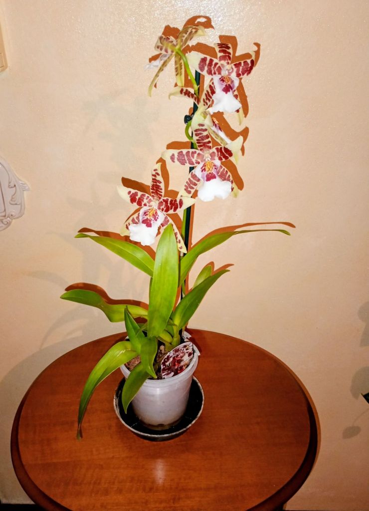 Buona serata amici cari, oggi vi saluto e condivido con voi questo mio scatto che ritrae un’orchidea bellissima che mi ha regalato oggi mio marito. È arrivato a casa e mi ha detto : “Auguri, questa è per te”.